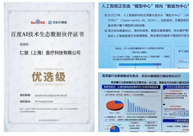 1月22日,华风数润受邀参与百度文心 Moment 大会 2026·上海站暨第二届文心大模型生态大会,并获颁“百度AI技术生态数据伙伴证书”。在当前大模型能力持续跃迁,算力与算法已进入快速迭代阶段,真正的约束开始转向数据侧——高质量、结构化、可验证的数据供给能力,成为模型走向行业场景的关键变量。本次获评,意味着我们在医疗AI-ready数据供给、数据结构化处理及合规可用机制方面的能力,已被主流大模型生态纳入体系。模型会更新,算法会进化,但数据供给能力一旦形成结构,将具备更强的穿透周期能力。在AI三要素以非对称节奏推进的时代,我们正在占据数据侧的关键位置。